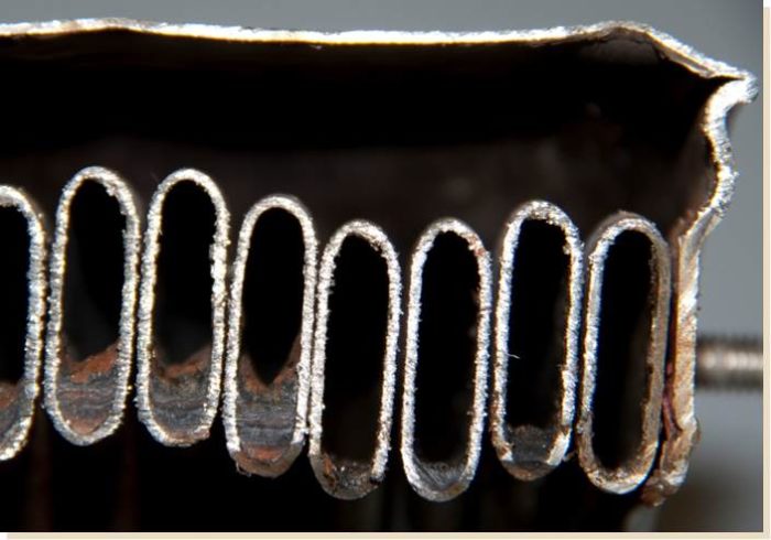 Con una sola passata del CLEAN F STEEL, pulitore specifico per lato fumi dei moduli a condensazione in ACCIAIO, è stato possibile rimuovere tutte le incrostazioni sia sulla superficie esterna che tra le spire ripristinando il corretto scambio termico. Il prodotto CLEAN F STEEL va spruzzato direttamente sulla superfice fredda e lasciato reagire per 5-10…